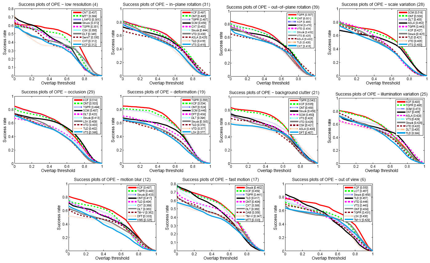 Figure 3 - The success plots of videos with different attributes. |