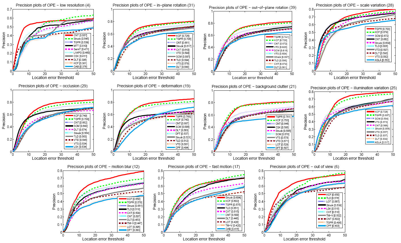 Figure 4 - Precision plots of videos with different attributes. |