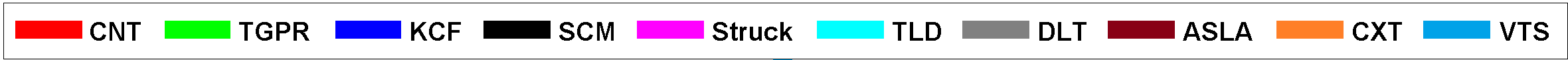 Figure 2 shows the success and precision plots of OPE of the top 10 performing tracking methods. Overall, the proposed CNT algorithm performs well against the state-of-the-art tracking methods. We analyze the tracking performance based on 11 challenging attributes of object tracking [7]. Overall, the CNT method performs well in all attributebased evaluation against the state-of-the-art methods.