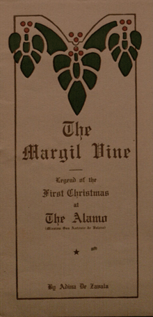 Zavala, Adina de. The Margil Vine: Legend of the First Christmas at The Alamo. San Antonio, TX: N.p., 1916.