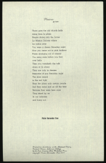 Hernández Cruz, Víctor. "Placeres." East Lansing Arts Workshop Press, 1973.