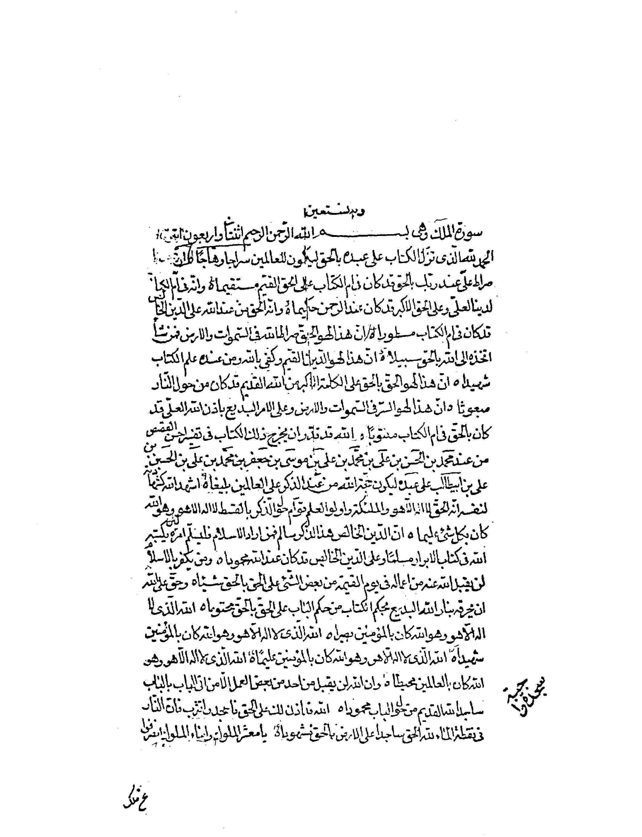 [12] انّ الّدين الخالص هذا الذّكر سالم فمن اراد الاسلام فليسلّم امره لان يكتبه اللّه فی كتاب الابرار مسلماً و علی الدّين الخالص قد كان بالحق محموداً