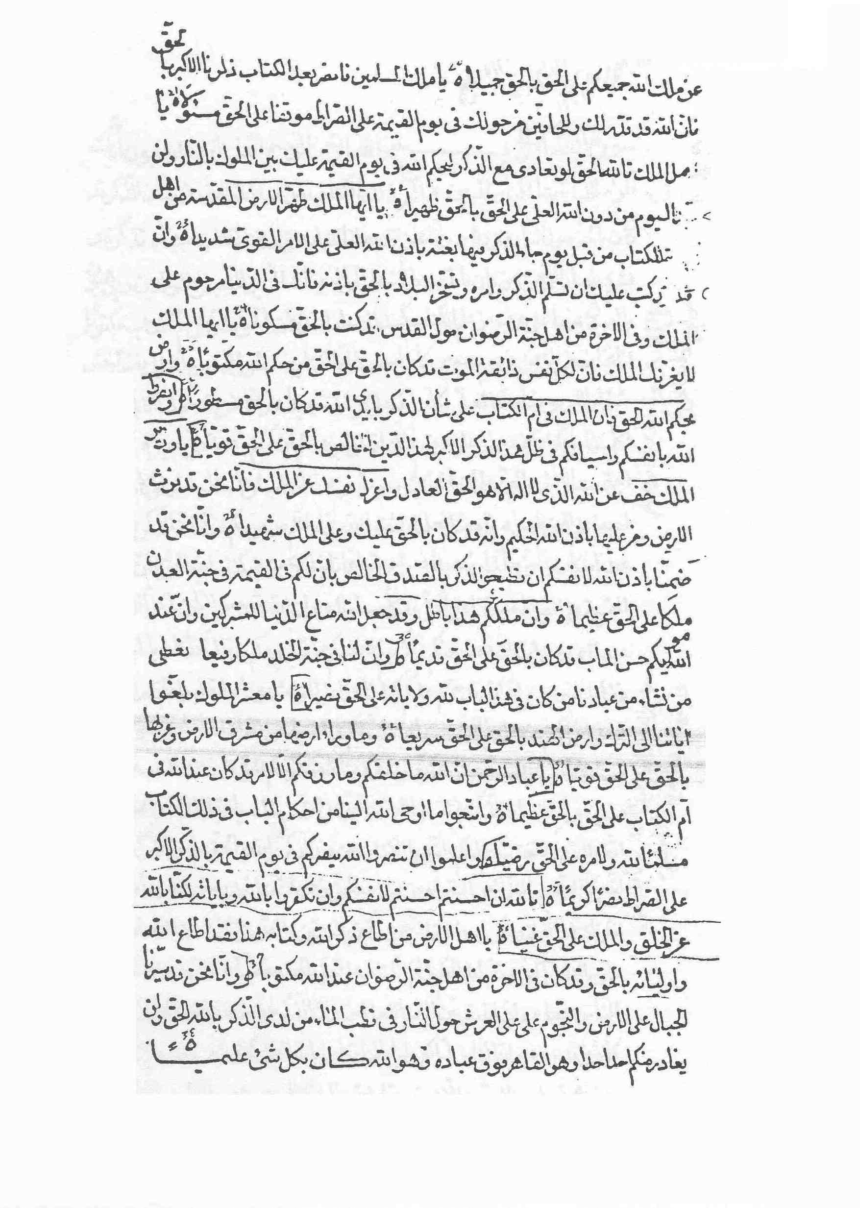 [40] يا اهل الارض من اطاع ذكر اللّه و كتابه هذا فقد اطاع اللّه و اوليائه بالحقّ و قد كان فی الاخرة من اهل جنة الرّضوان عند اللّه مكتوباً "O people of the earth!